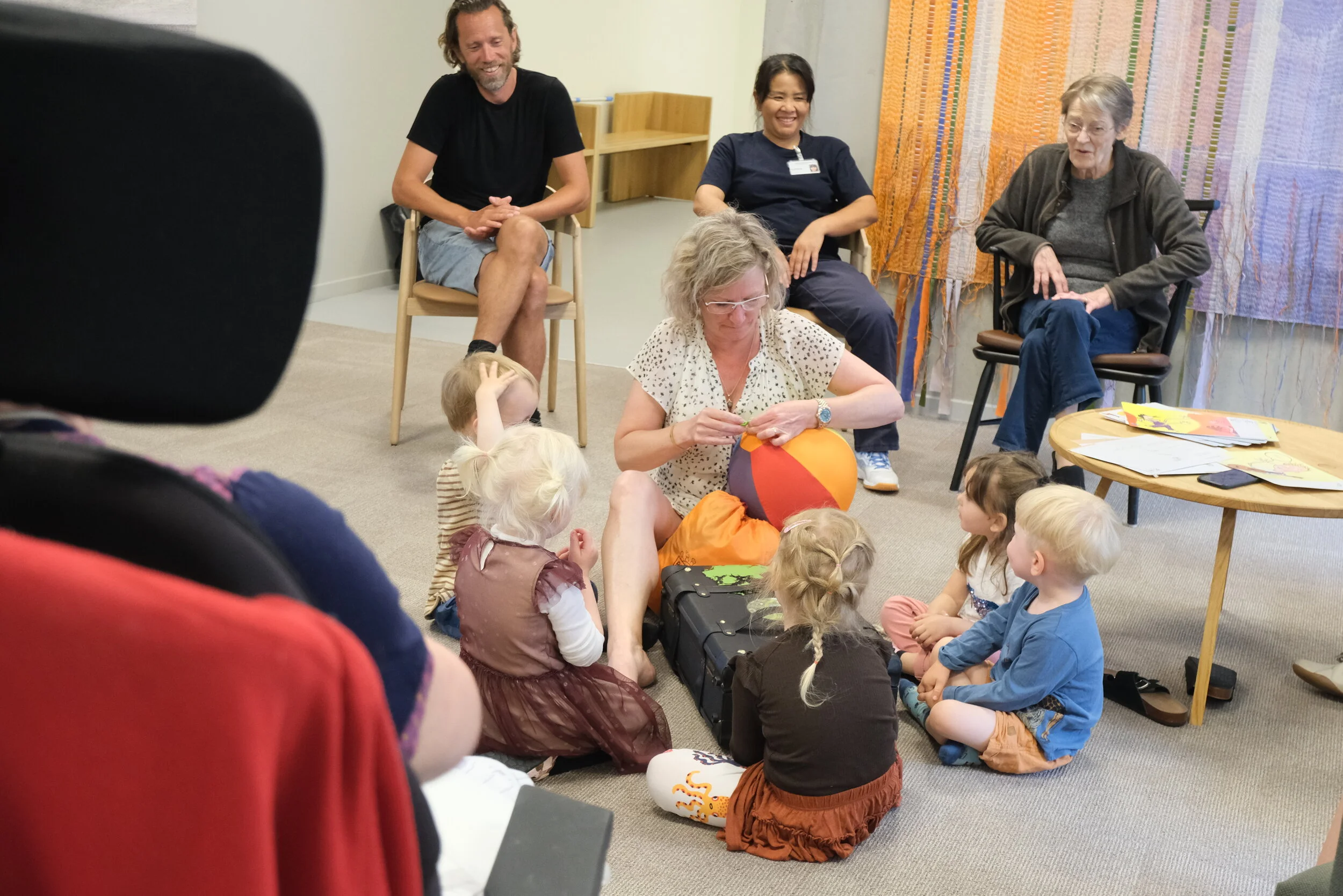 De sidste par måneder har personalet fra både børnehaven, Børnenes Ø, og plejehjemmet, som begge holder til i Generationernes Hus på Aarhus Ø, været med til at afprøve foreningen Samværds nye koncept Leg på Plejehjem med Børnehaver. Undervisning og workshops har rustet personalet til selv at kunne facilitere den musikalske legestue med børnehavebørn og plejehjemsbeboere. Nu mødes de fast én gang om ugen til stor glæde for alle deltagere.
