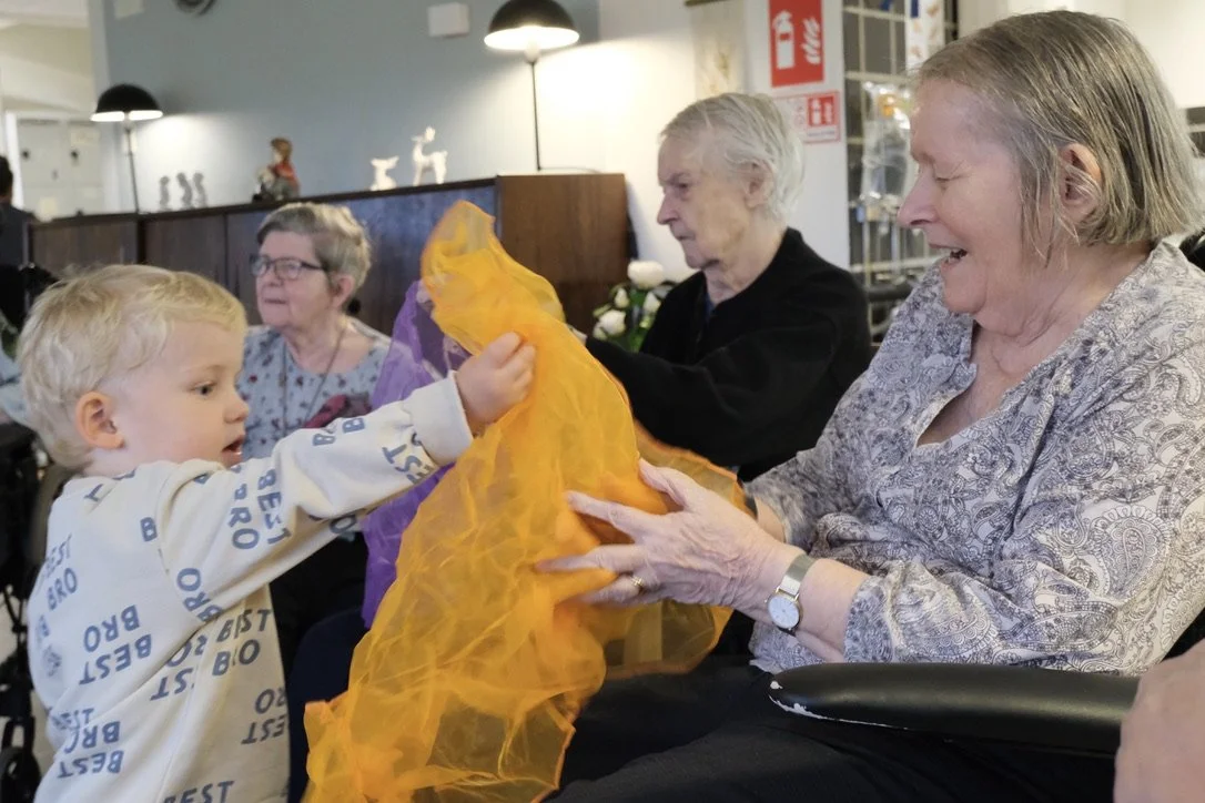 Glæden i beboernes øjne er ikke til at tage fejl af, når de ser de små børnehavebørn danse rundt i fællesstuen på plejehjemmet. Heldigvis kommer de fremover til at se hinanden hver mandag, når der afholdes Leg på Plejehjem.