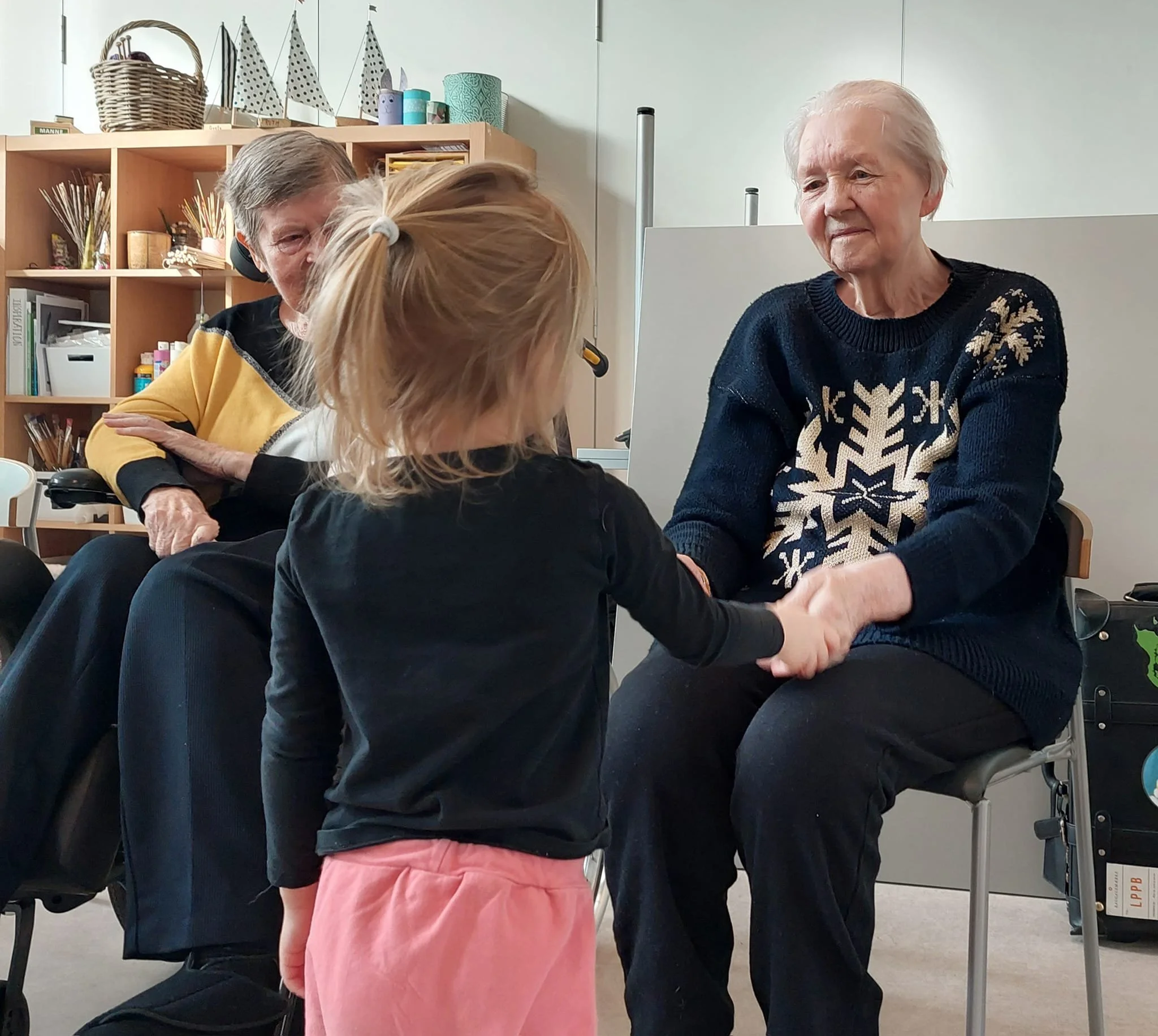 Det er næsten en form for magi - hvor to generationer mødes og man kan se glæden. Når en lille bitte hånd rækker ud til en større og rynket hånd og øjnene mødes i et smil. Når vi sammen synger sange, danser, hopper, giver high five og klapper.....