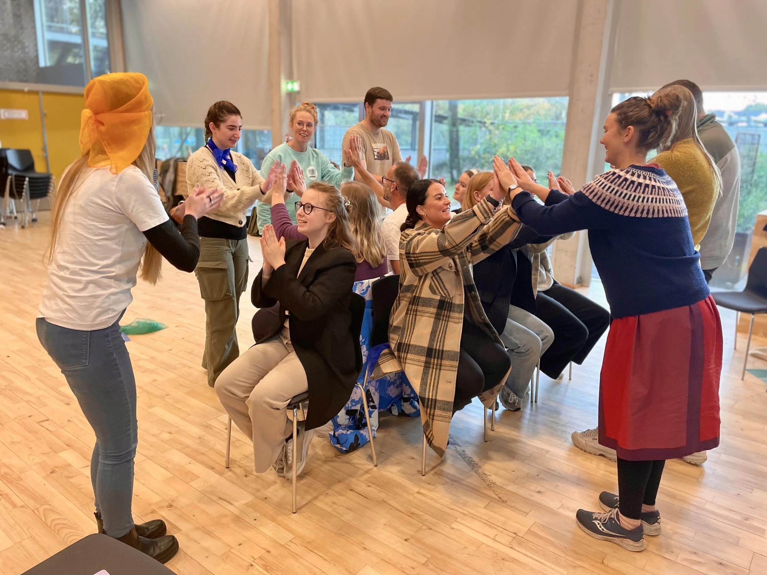 Når vi underviser, prioriterer vi altid, at alle skal op af stolen og mærke på egen krop hvad sang, leg og musik kan.