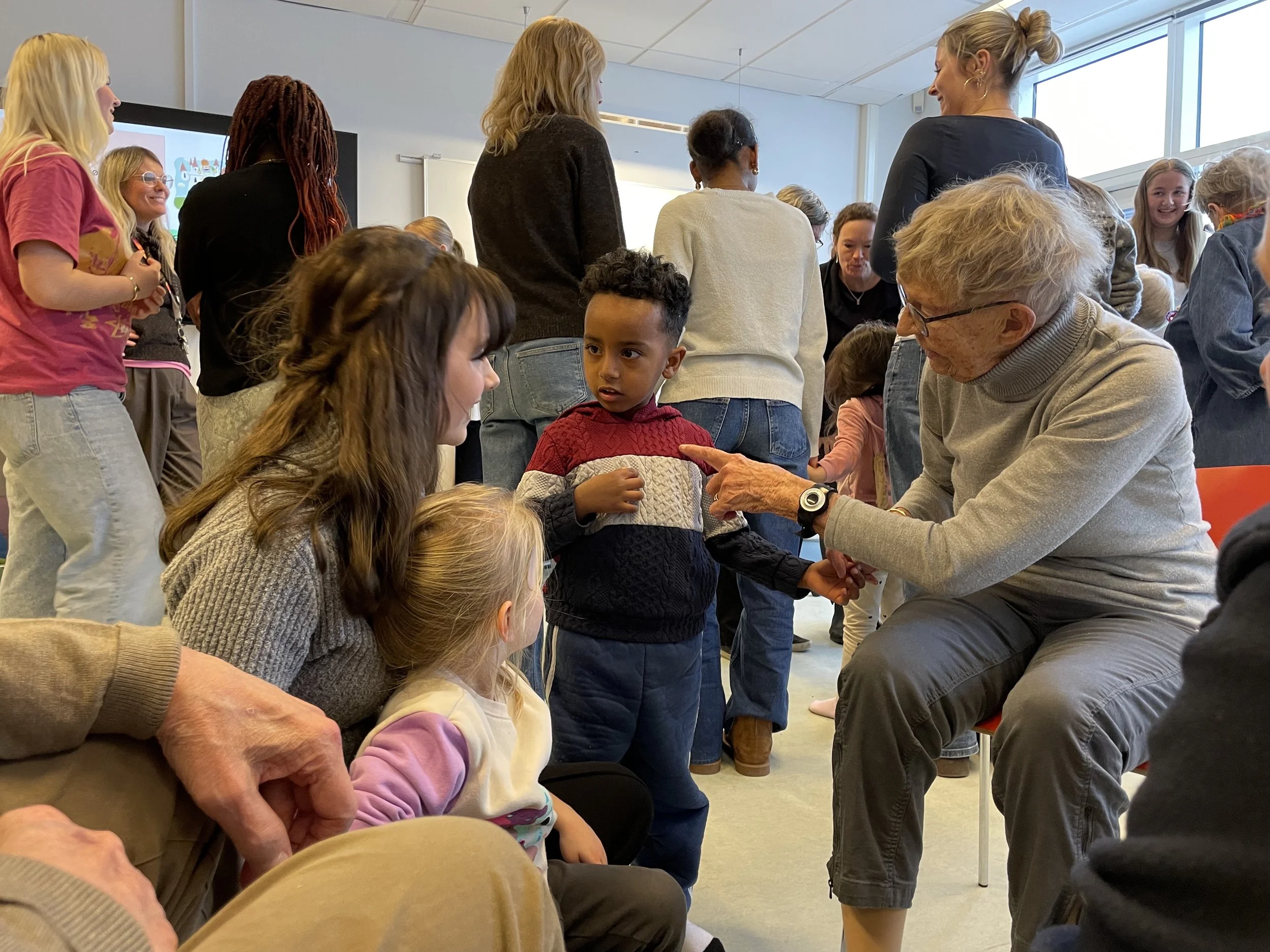 Der var fuld knald på da lokale børnehavebørn og plejehjemsbeboere sang og dansede med til Leg på Plejehjem på Kulturmødet Mors. Vi havde sammensat et klassisk legestue-program, så alle deltagere kunne mærke på egen krop, hvad det er Leg på Plejehjem kan. Det blev en kæmpe succes!